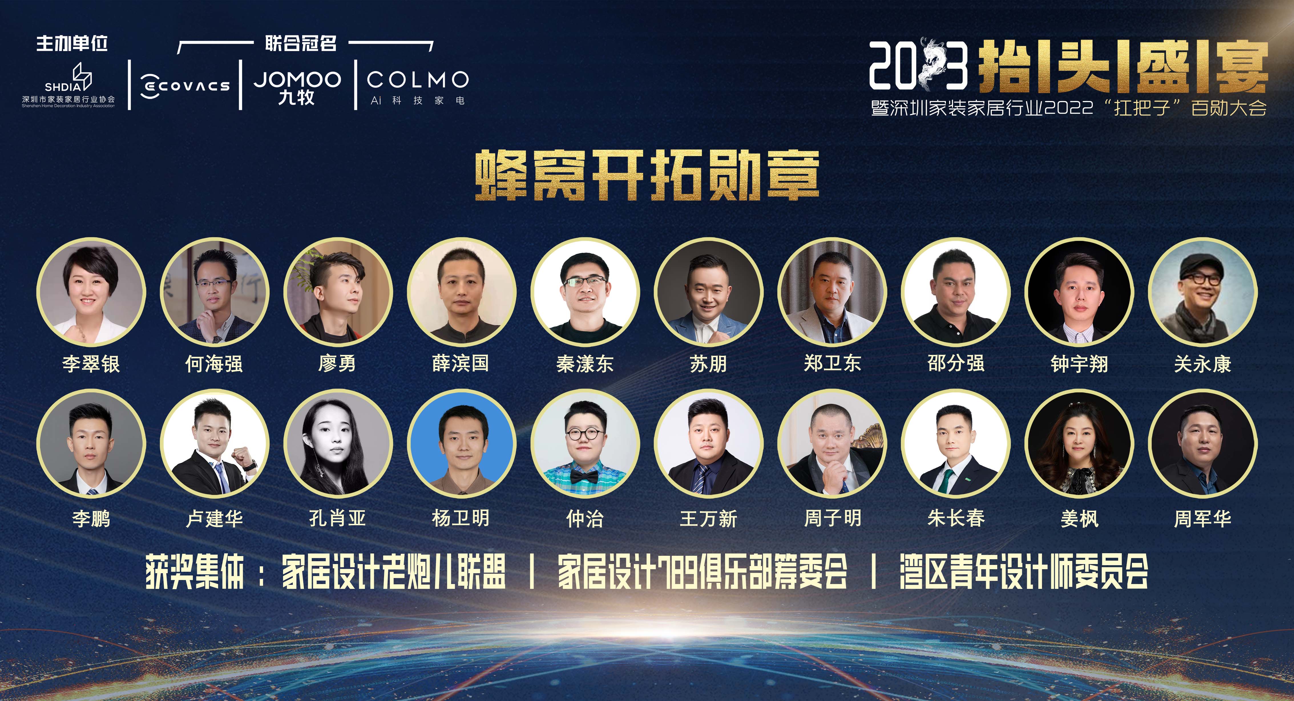 這一年,市場遭遇接二連三的打擊,行業面臨極大的阻力,有一群人逆向而行,開拓新業,以全新的業績和模式為行業進步做闖出了一條新路。獲得2022年度深圳家裝家居行業“扛把子”蜂窩開拓勛章的20位企業家,分別是: