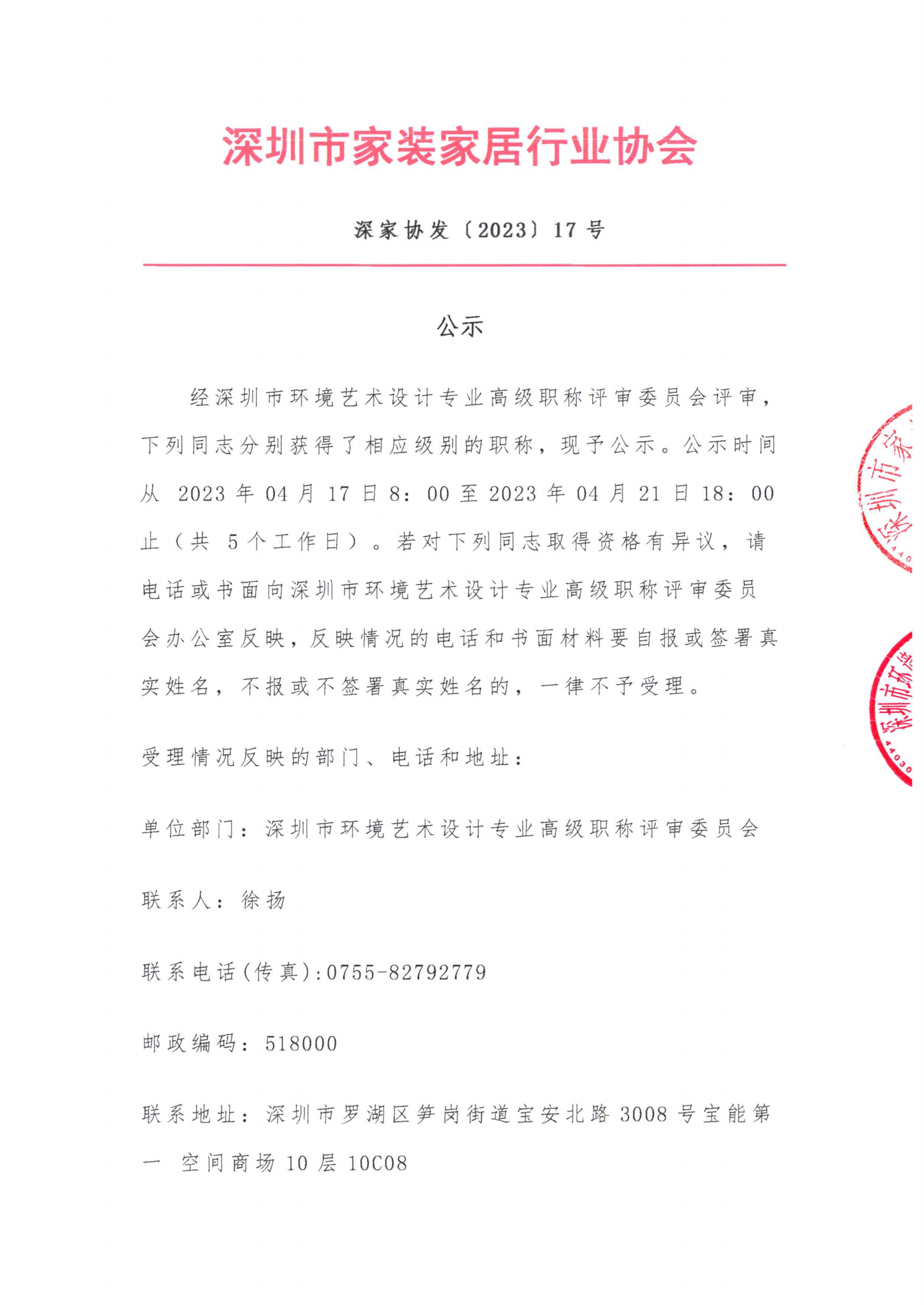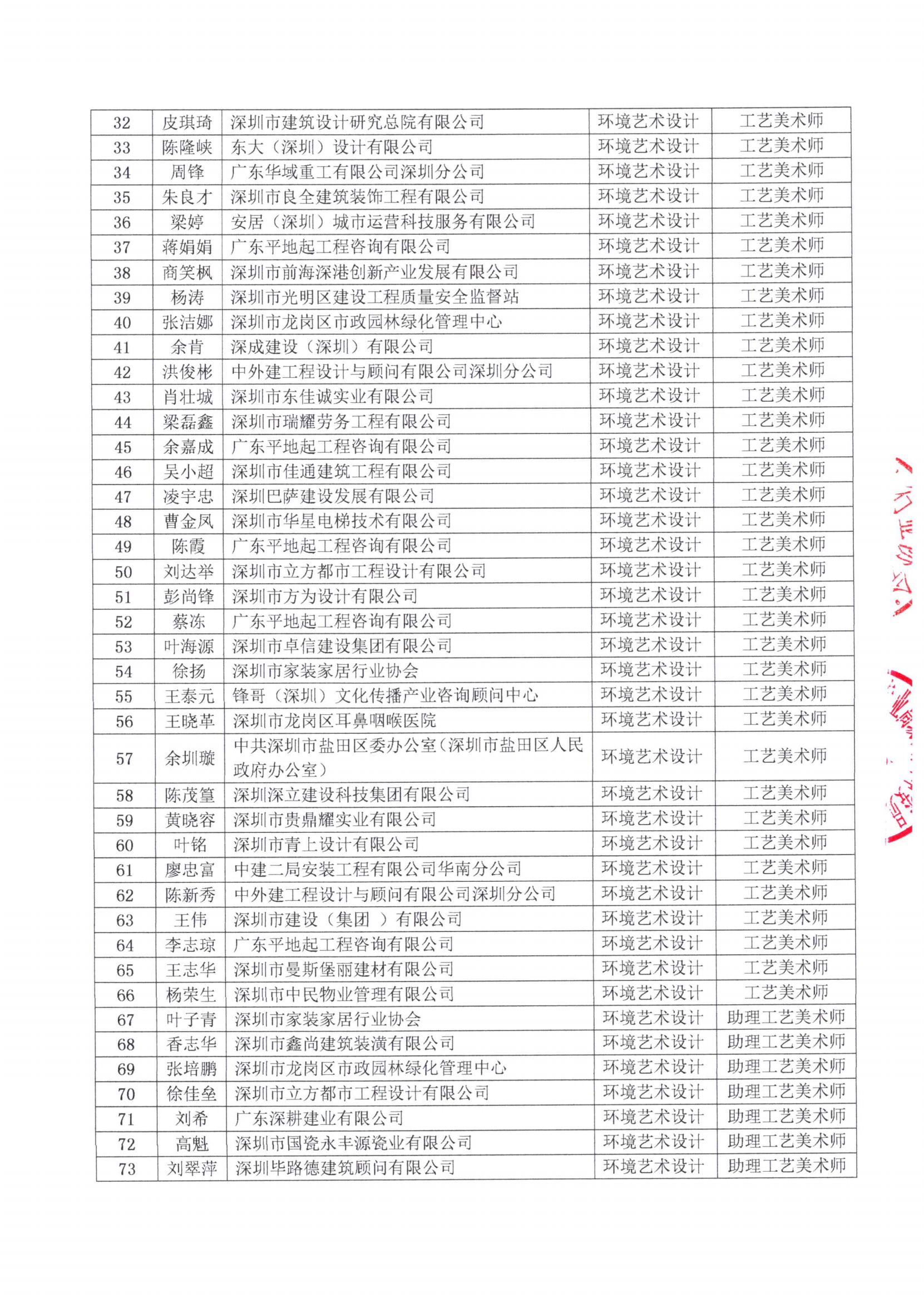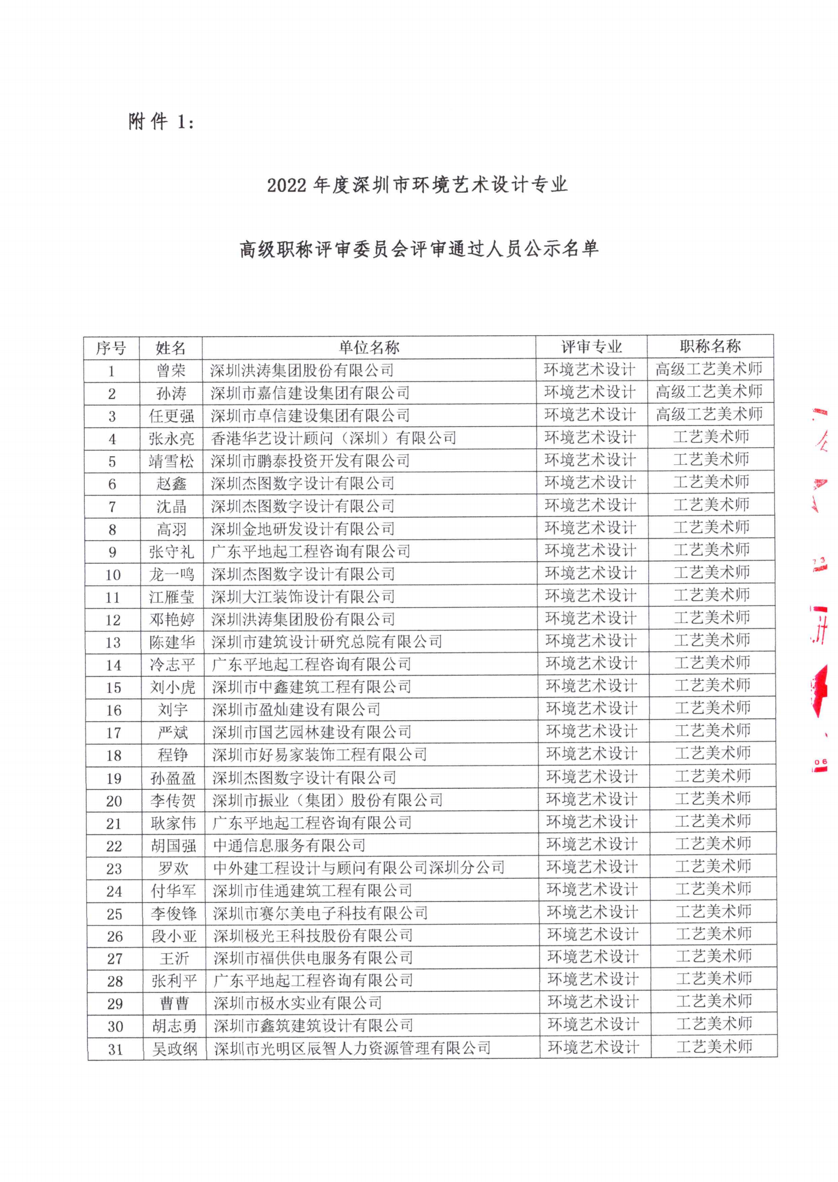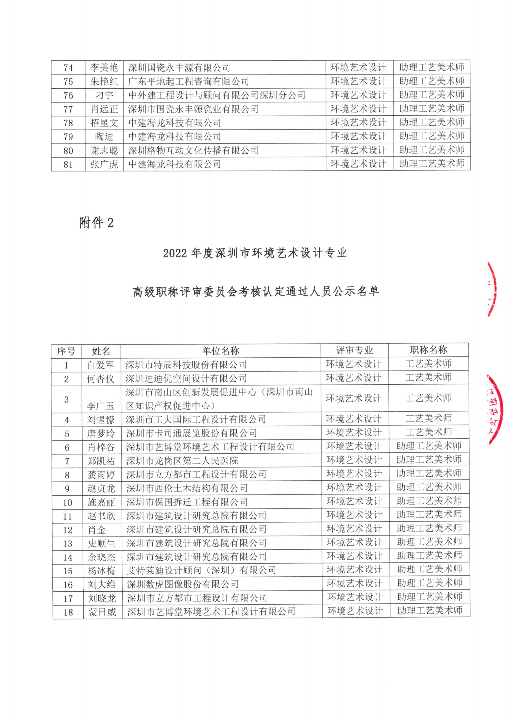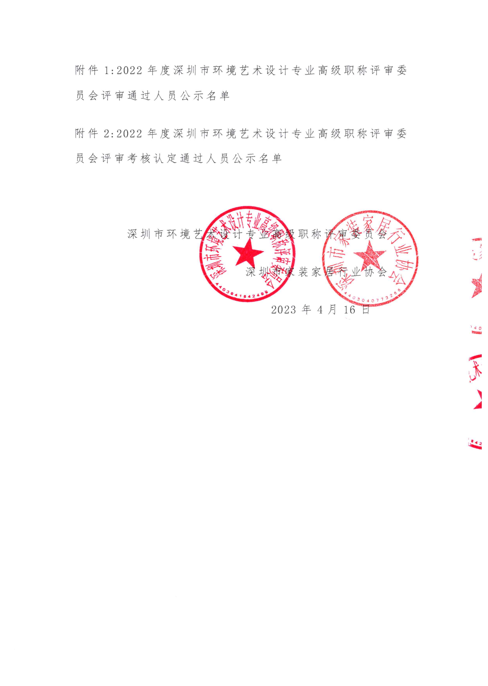 關于2022年度深圳市環境藝術設計專業副高、中級、初級職稱評審結果的公示